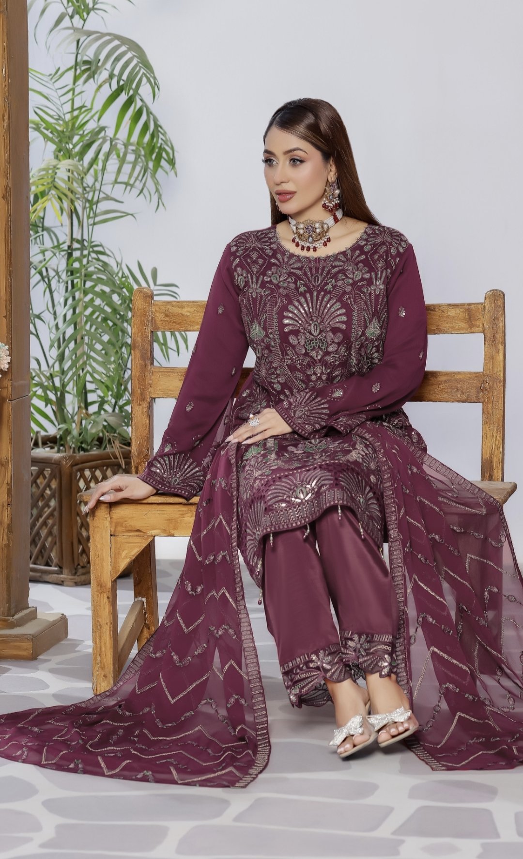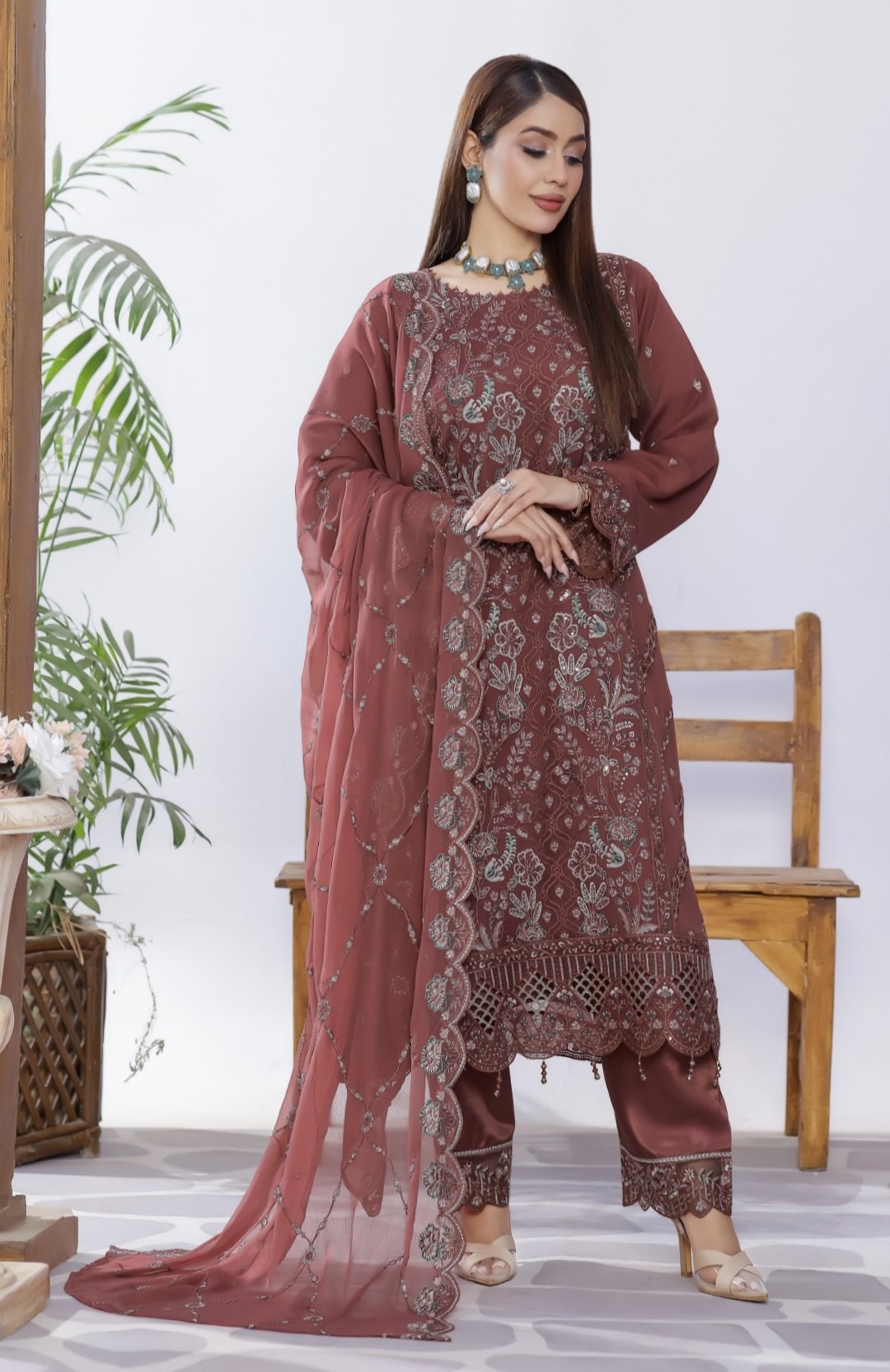 Delicately embroidered chiffon paired with beautifully crafted embroidered trousers, created for women who appreciate grace, refinement, and timeless fashion 💫